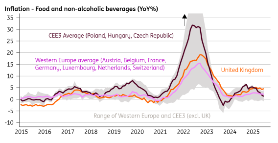 ING thinks UK food inflation should follow the rest of Europe lower in coming months.