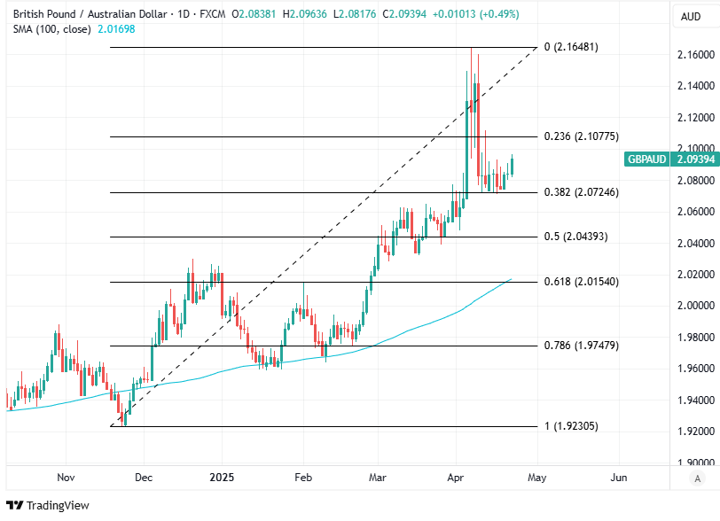 GBP/AUD has traded in a narrow range since the eve of Passover, having receded from near 2.1648 and its highest level since before the 2016 Brexit referendum in the wake of US President Donald Trump’s “Liberation Day,” tariff announcement, which weighed heavily on the US Dollar in the intervening period.