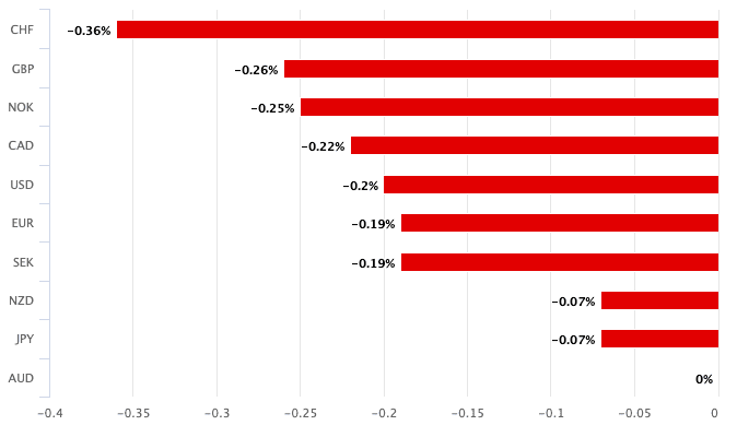Above: AUD is down against all major peers post-RBA decision.