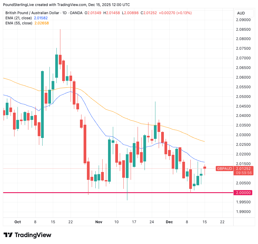 The pound to Australian dollar exchange rate (GBP/AUD) fell to the significant support level of 2.0 last week, before finding support and rebounding to 2.0104, where we find it on Monday.