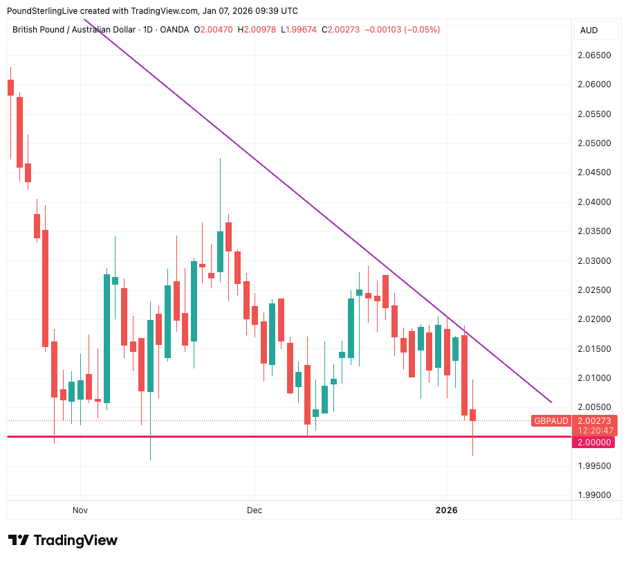 Following the release, the pound to Australian dollar exchange rate dipped to below the key 2.0 support zone (see above).
