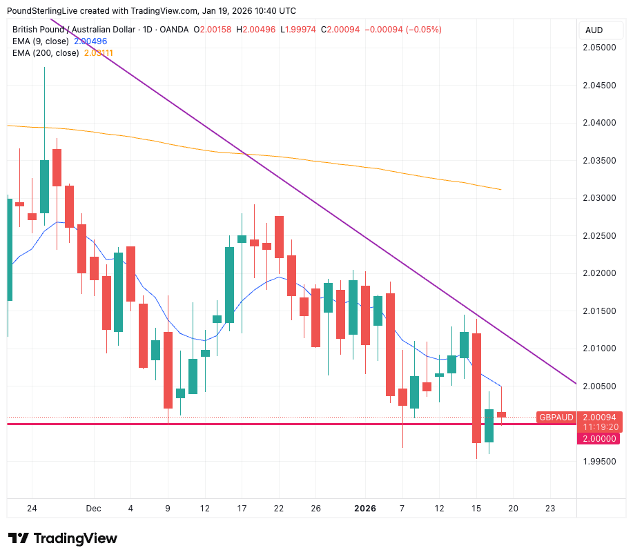 AUD/USD at new highs would be reflected by a sub-2.0 GBP/AUD.