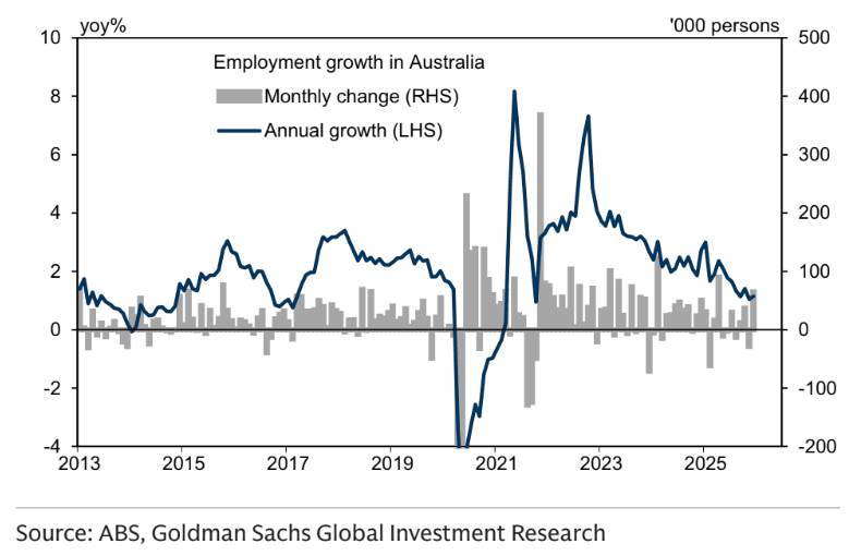 "We see a risk that the trend decline in the unemployment rate continues in 2026 as strong private demand flows through, putting further upwards pressure on inflation and ultimately leading to a higher-for-longer cash rate path," Bank of America says.