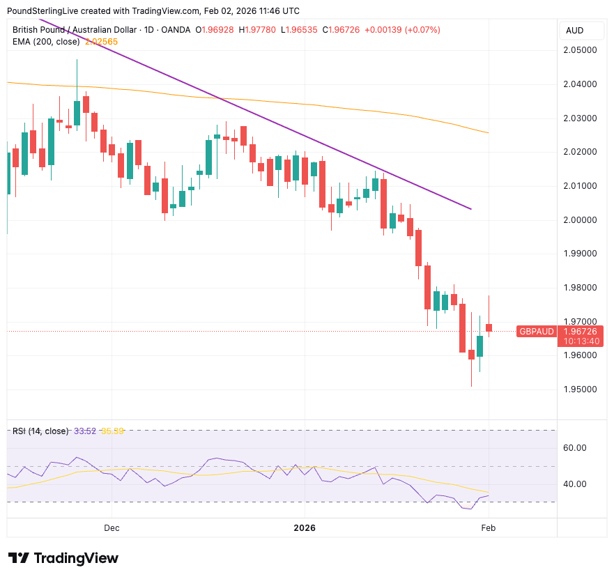 The earlier decline left GBP/AUD oversold on short-term timeframes, with the daily Relative Strength Index falling below the 30 threshold that typically signals stretched downside momentum.