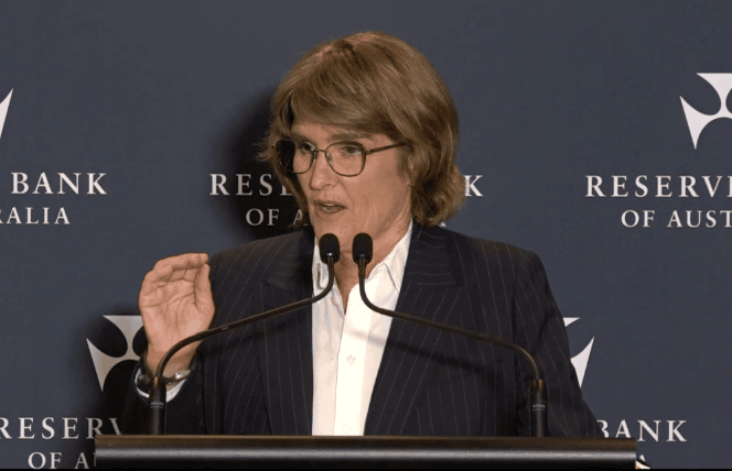Governor Michelle Bullock said in the post-decision conference that upside risks to demand have materialised. Image still courtesy of the RBA.