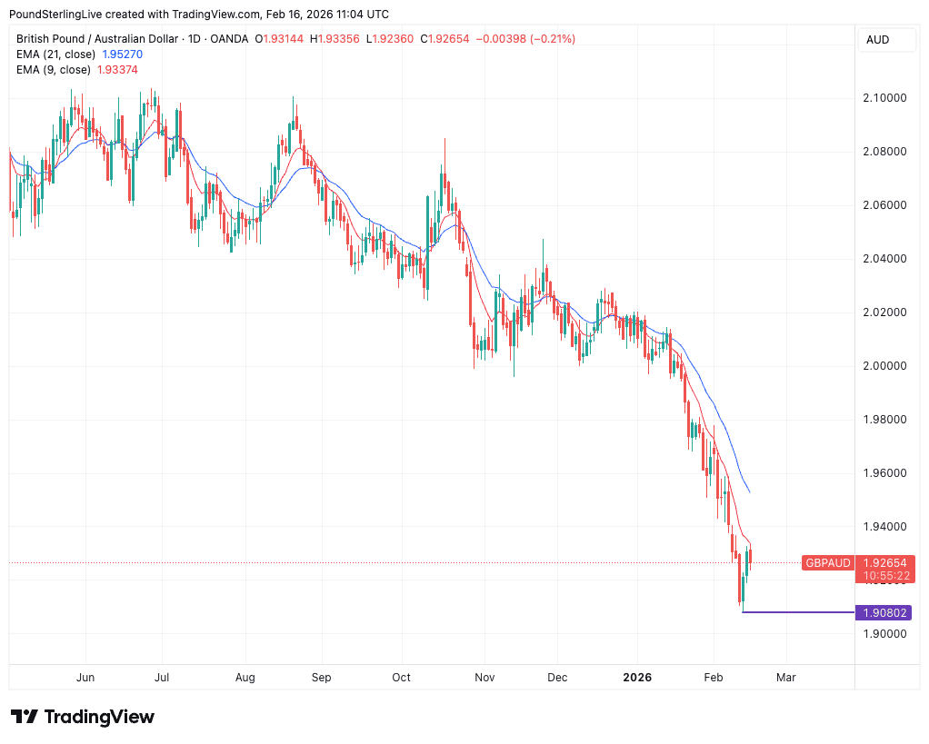 Those needing to buy AUD (sell GBP) should treat any move toward 1.94 as an opportunity to secure cover, as the broader structure still favours AUD strength. Those needing to sell AUD (buy GBP) can afford some patience during this consolidation phase but should remain cautious, as a break below 1.9080 would likely accelerate losses.
