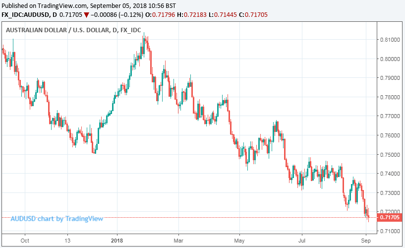 Australia's currency has born the brunt of US economic out-performance relative to the rest of the world and of President Donald Trump's "trade war" with China and the resulting financial instability in emerging markets.