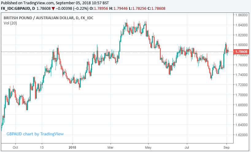 Above: Pound-to-Australian-Dollar rate shown at daily intervals.