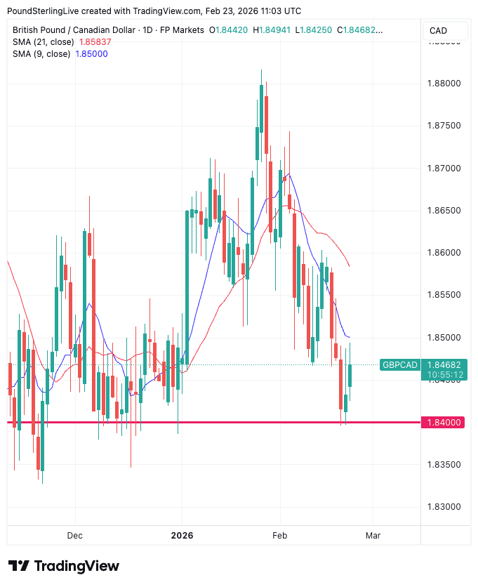 If anything, UK data could come in better than expected in coming weeks, which limits downside in GBP. For GBP/CAD that ensures 1.84 is defended and could mean it rises back towards the centre of its 2025-2026 range near 1.8550