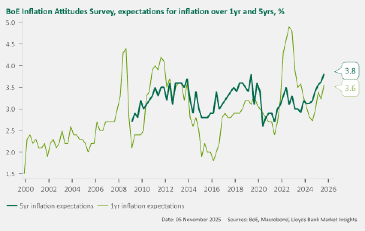 On balance Lloyds Bank expects the Governor at least to come down on the side of no change this time in a nod to the hawks' inflation persistence concerns with the hope of keeping them onside to support further Bank Rate reductions in 2026 when CPI ought to have come off its recent peak.