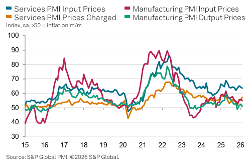 Above: Price pressures facing firms are also robust, suggesting the current trend of disinflation in the economy has its limits.