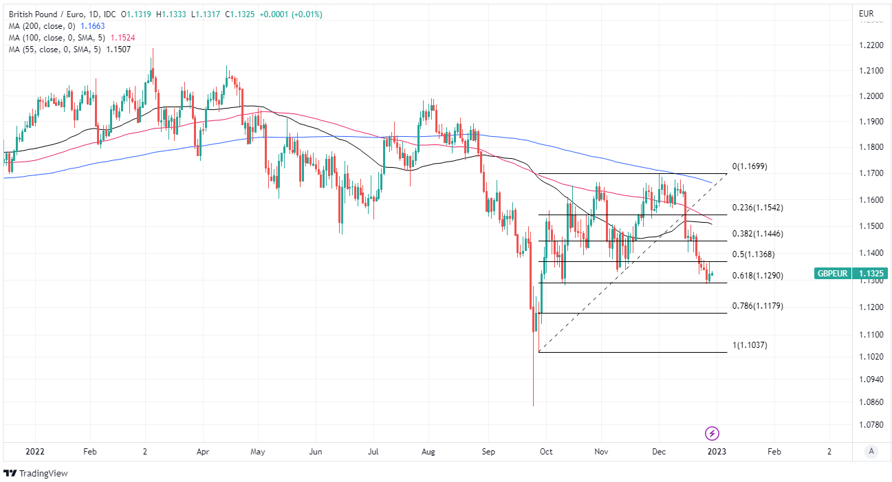 The Pound to Euro exchange rate has appeared to be finding a footing near the round number of 1.13 and some strategist commentary suggests this might be the result of speculative short-sellers booking profits on bets against Sterling with a view to reloading at better levels up ahead.