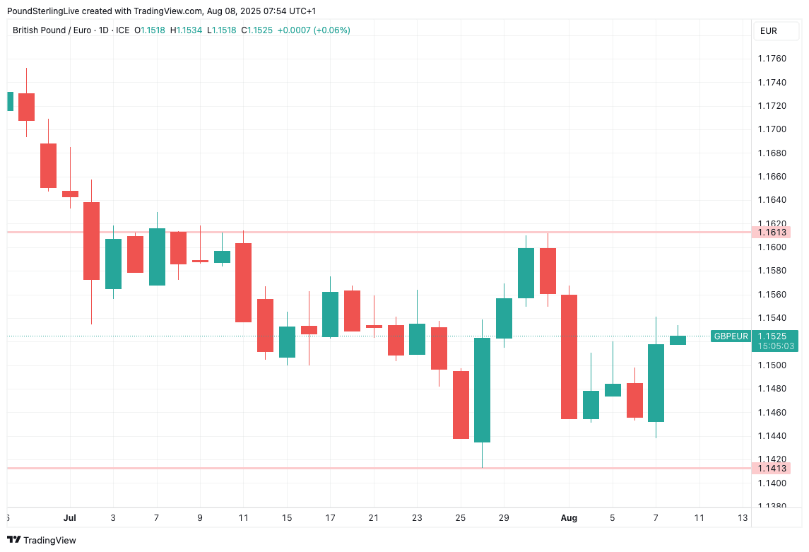 The Pound to Euro exchange rate rose to as high as 1.1540 on the day the Bank of England cut interest rates by 25 basis points and signalled it will become increasingly difficult to continue with further cuts due to rising inflation.