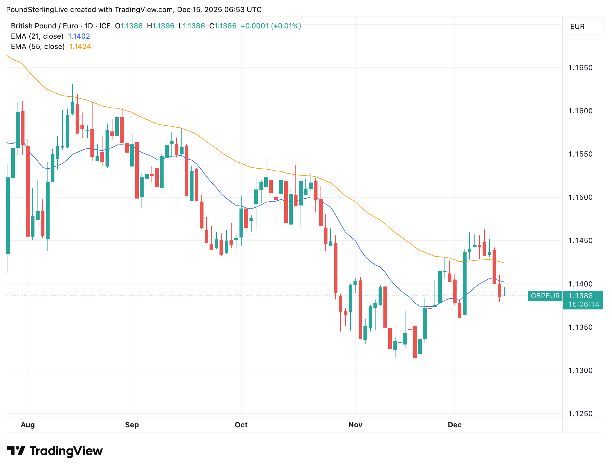 Above: GBP/EUR at daily intervals.