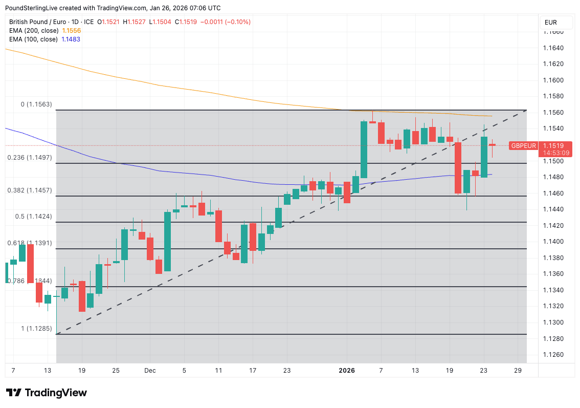 However, the rally continues to face resistance from the 200-day exponential moving average near 1.1556, which has capped advances since early January.