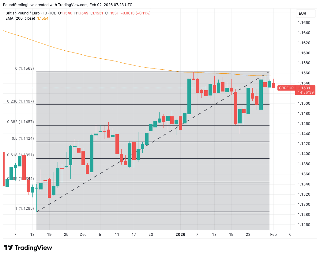 The problem for those wanting a stronger pound is that gains are limited by resistance at the 200-day exponential moving average which lies just ahead at 1.1563.