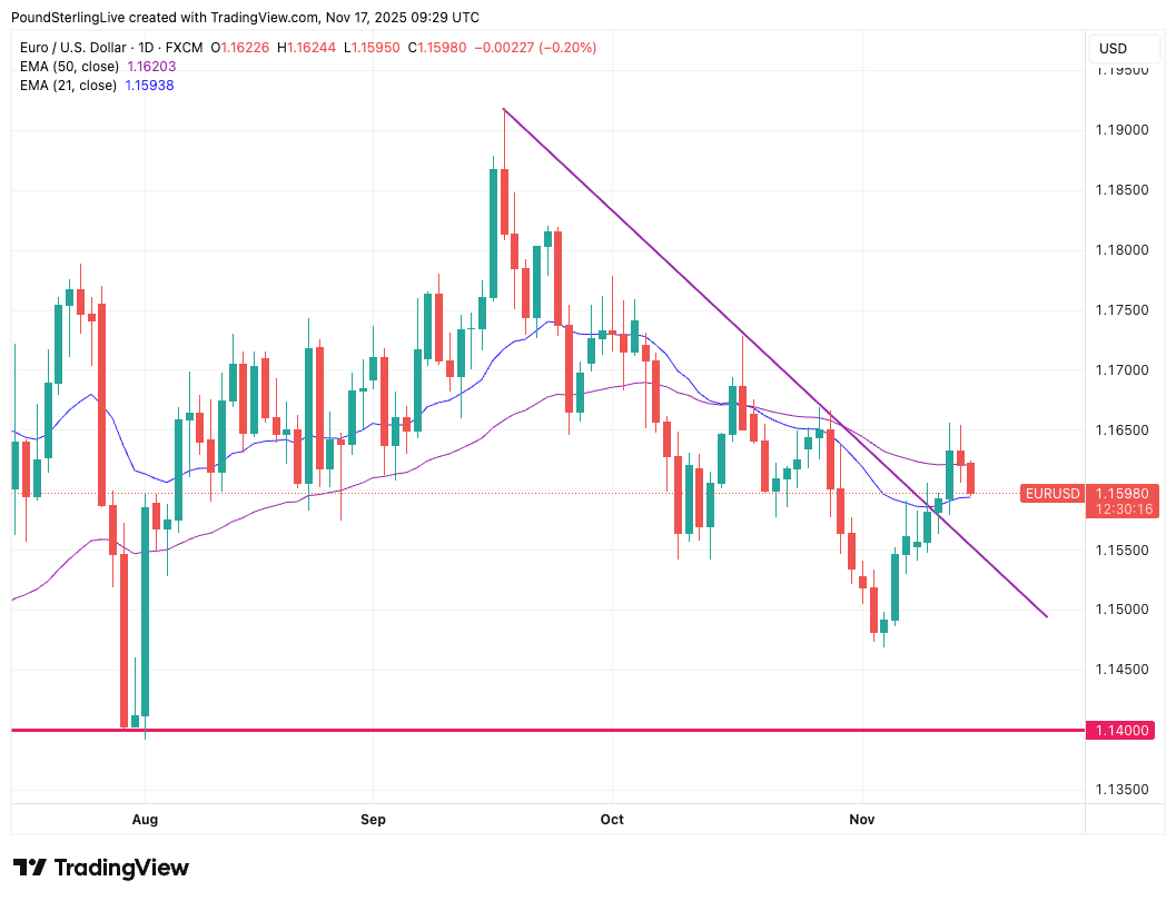"Technically, euro buyers managed to push through the 21‑day moving average into the weekend, breaking a cap that had held since early October," says Antonio Ruggiero, an analyst at Convera.