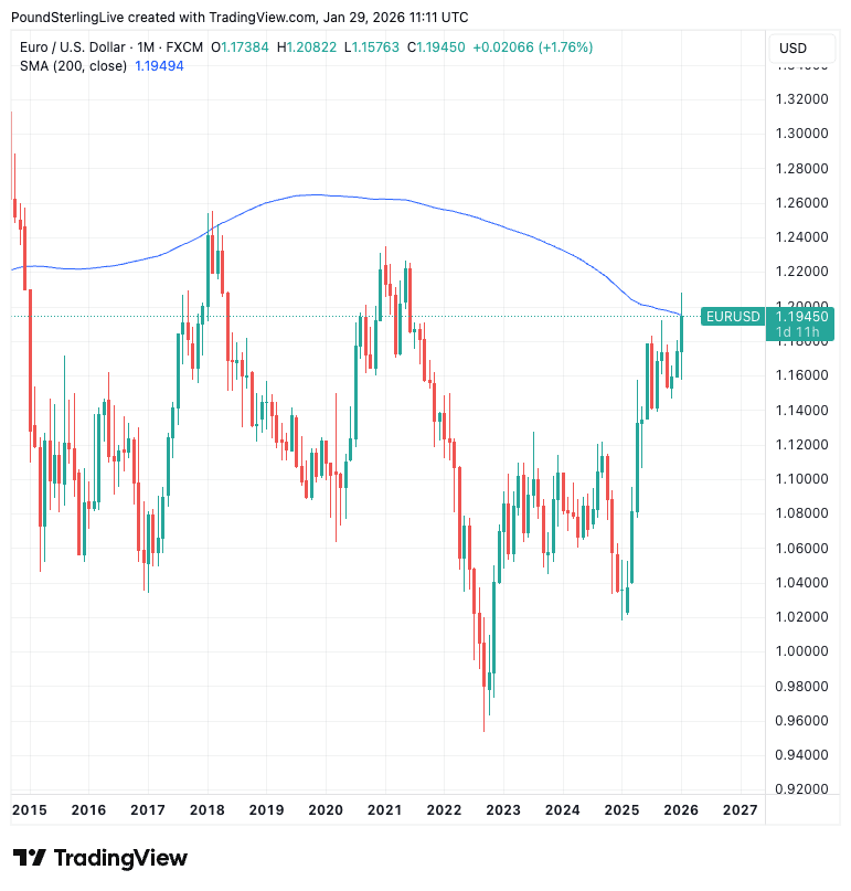 For corporate treasurers in particular, a sustained break above the 200-month moving average would raise questions over whether existing hedge ratios remain appropriate, potentially prompting a shift from static forwards toward layered hedging, shorter tenors, or the use of options to preserve upside participation while protecting cashflow budgets.