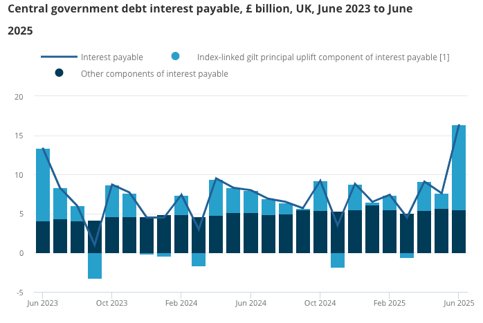 That borrowing is meeting the OBR's forecasts is good news to Chancellor Rachel Reeves, even if it doesn't fundamentally change the UK's poor debt dynamics. After all, this was still the 4th highest June borrowing since monthly records began in 1993.