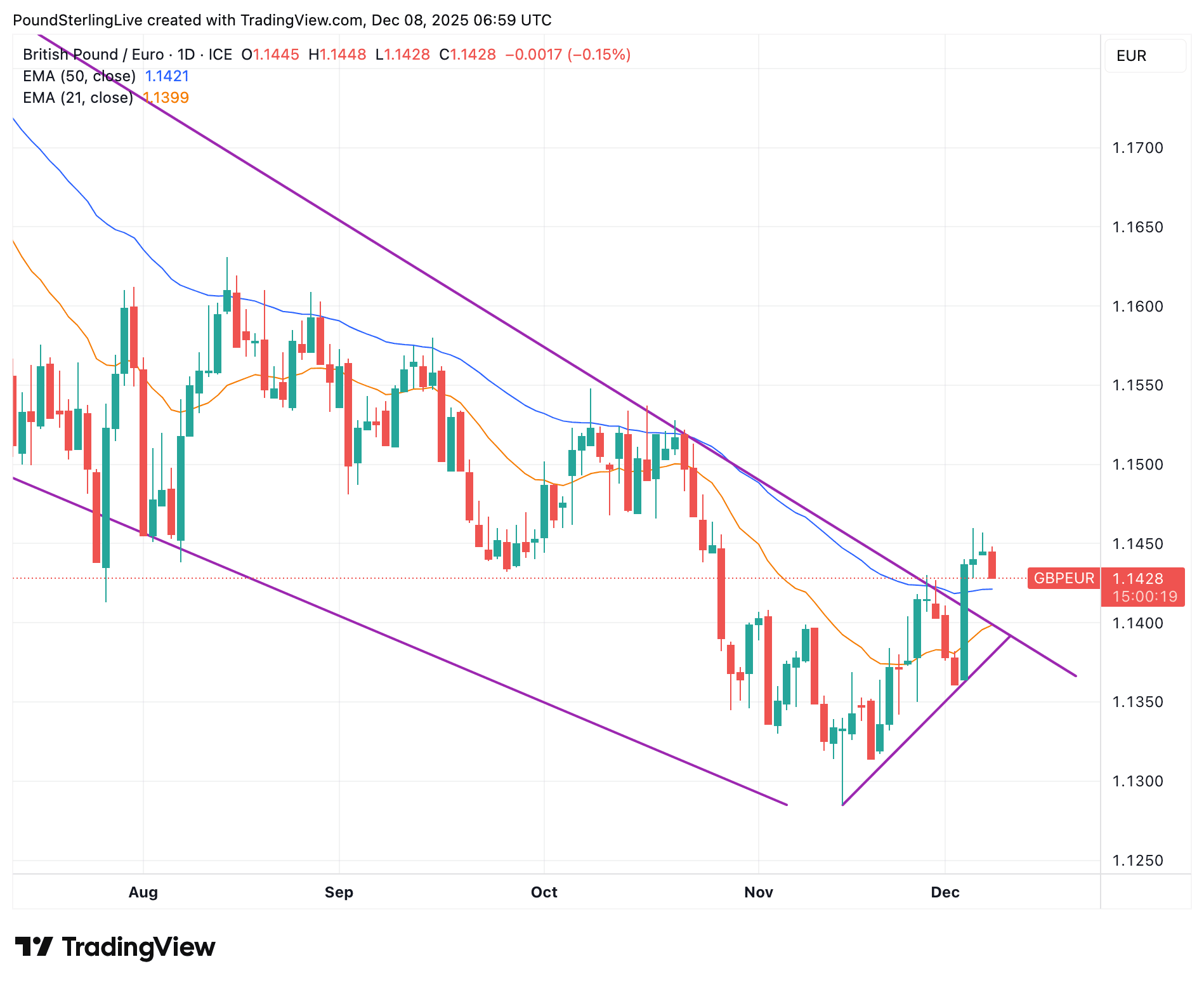 The pound to euro exchange rate (GBP/EUR) has extended its post-budget year-end rebound, rising to as high as 1.1460 last week.
