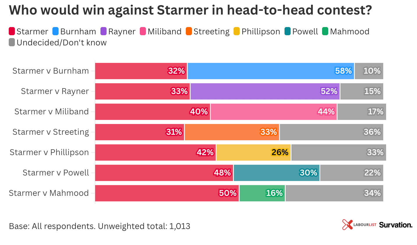 Polling of Labour members suggests that Rayner would be a strong contender in any contest, with one recent survey showing Starmer would lose head-to-head races against several high-profile figures, including Rayner and Burnham.