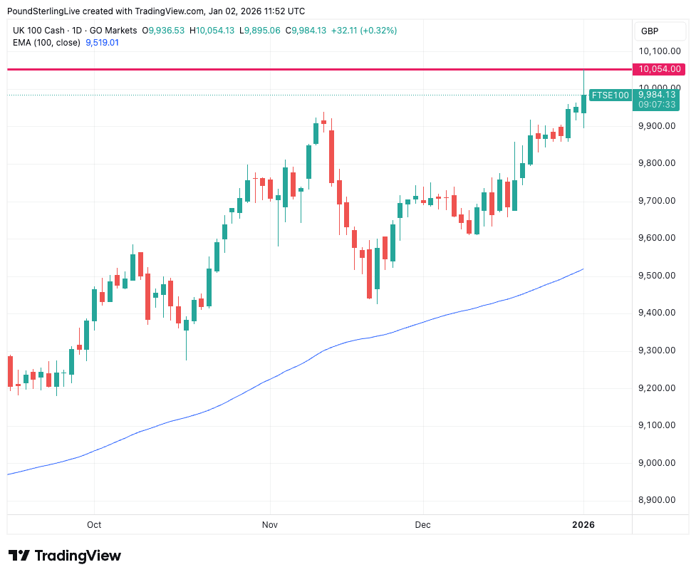 Demand for UK assets is strong at the start of the new year as the FTSE 100 hits a new record at 10052.