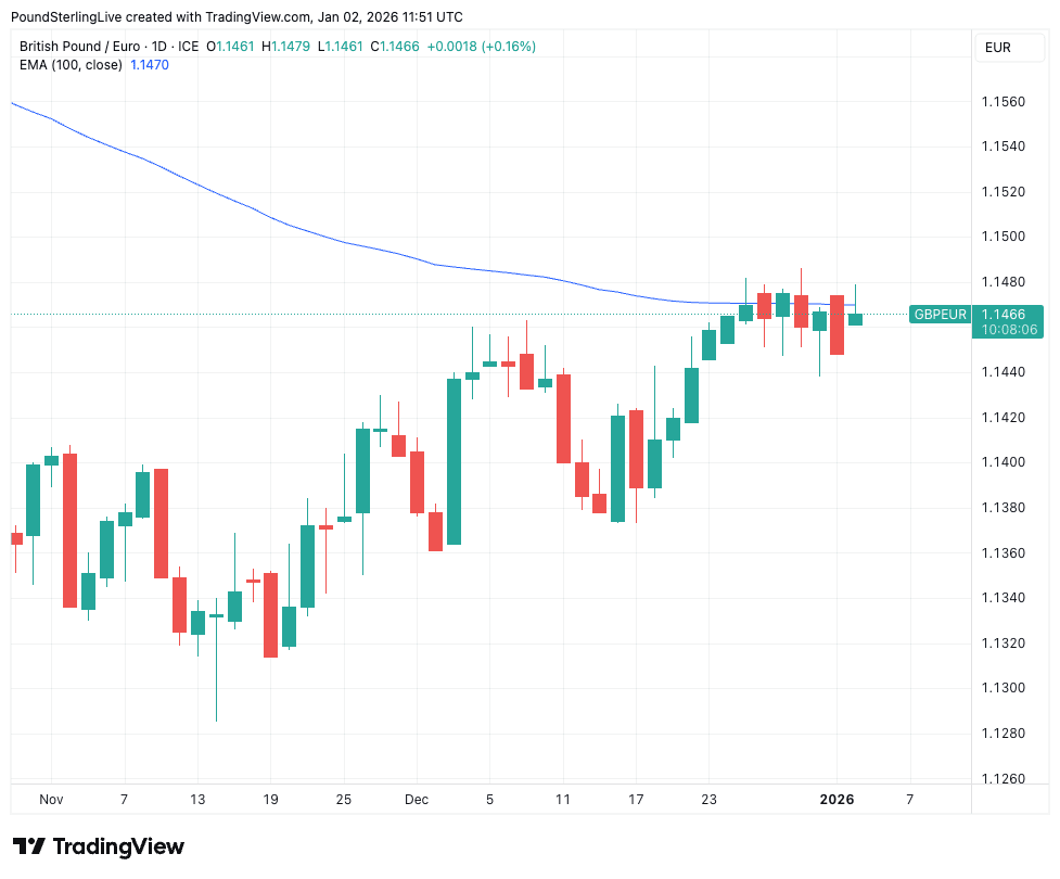 📈 The pound to euro exchange rate trades at 1.1470, a level which it has kept close contact with since Christmas ushered in lower FX turnover volumes.
