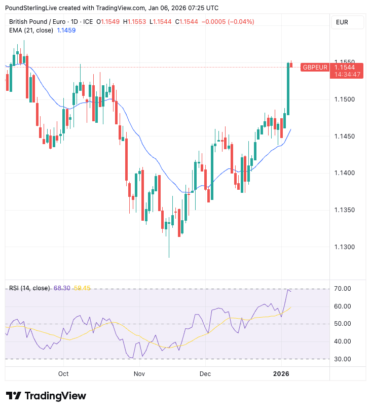 GBP/EUR built some upside momentum through the course of December as global equity markets ticked higher, confirming investor sentiment to be an important driver of the pair. Markets start 2026 in good spirits, helping the GBP recovery to extend into the new year.