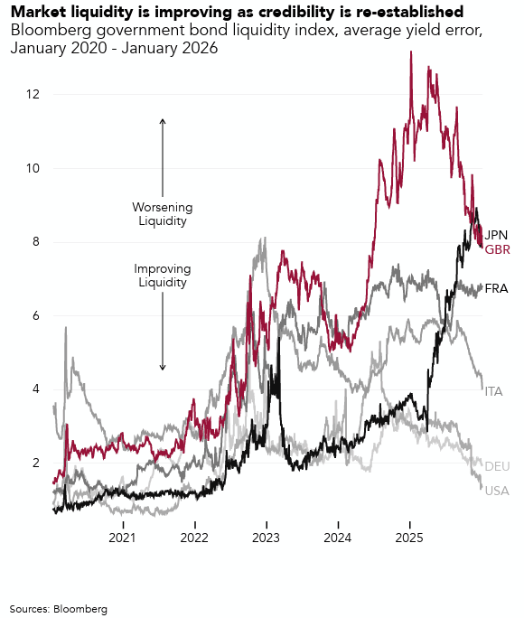 Liquidity conditions in gilt markets are improving steadily, according to Corpay, easing pressures that have weighed on financial conditions.