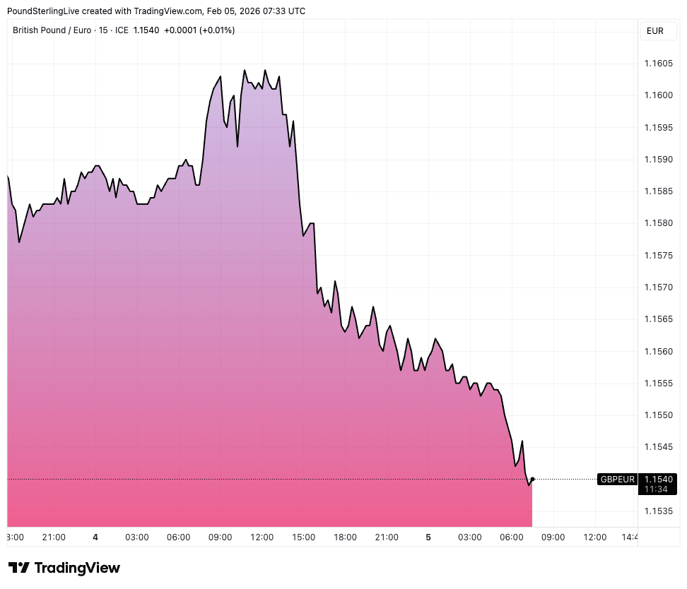 Losses for the pound extend into the Thursday session, with GBP/EUR - the main barometer of UK-specific sentiment in FX markets - reaching 1.1543, amidst negative headlines about Starmer's grip on power. UK gilts are also under pressure.