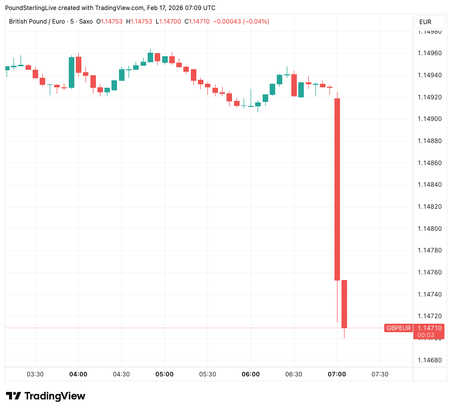 Sterling weakness is apparent on all the major GBP cross exchange rates as the market gives a clear thumbs-down verdict on these figures. "It is the weakest currency in the G10 FX space on Tuesday, and the pound is now trailing behind the dollar, and is the weakest currency in the G10 so far this month," says Brooks.