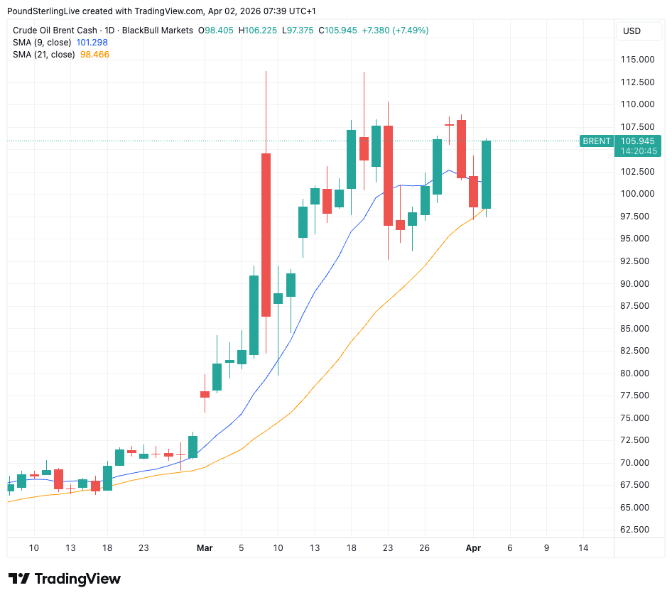 Above: Brent crude is still elevated, providing a supportive backdrop for USD.