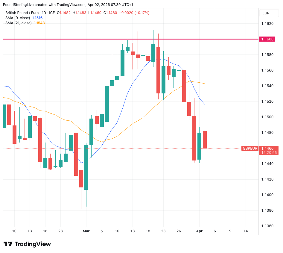 Sending euros (GBP/EUR): The rate climbed steadily through March as the war developed, but has since given back most of those gains and technical indicators point to a growing downtrend movement. Trump's confirmation of three more weeks of hostilities adds further complexity; the immediate watch is UK bond markets, where a fresh selloff would likely push GBP/EUR to new lows. In this environment, waiting for clarity carries its own risk. A specialist dealer can help you assess whether to act now or set a defensive order.