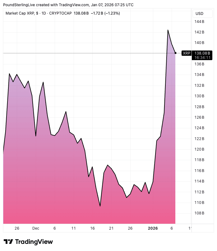 Above: XRP/USD at daily intervals.