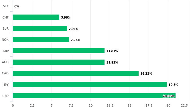 Above: SEK outperforms allcomers when screened over a one-year horizon.