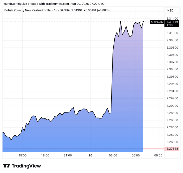 The Pound to New Zealand Dollar exchange rate is 1.0% higher at the time of writing at 2.3123, its highest level since the April tariff day market ructions. Losses against the Euro extended a per cent to 1.9955, and the NZD/USD fell by a similar margin to 0.5832.