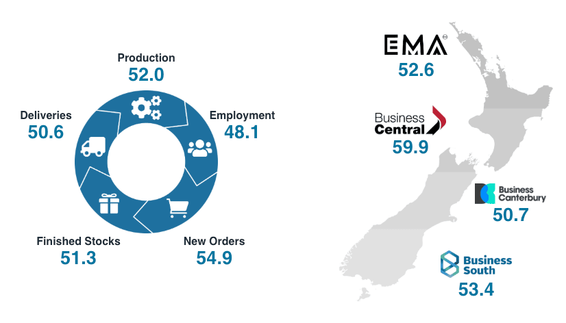 Business NZ says the survey confirms emerging "signs of life" as four of the five sub-index values were in expansion during October, led by New Orders (54.9), which showed its highest level of expansion since August 2022.