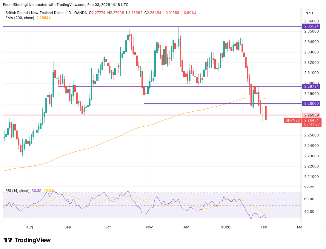 Failure to do so could see the New Zealand dollar lose momentum quickly, opening the door to a reversal back toward late-2025 levels despite the current technical pressure on GBP/NZD.