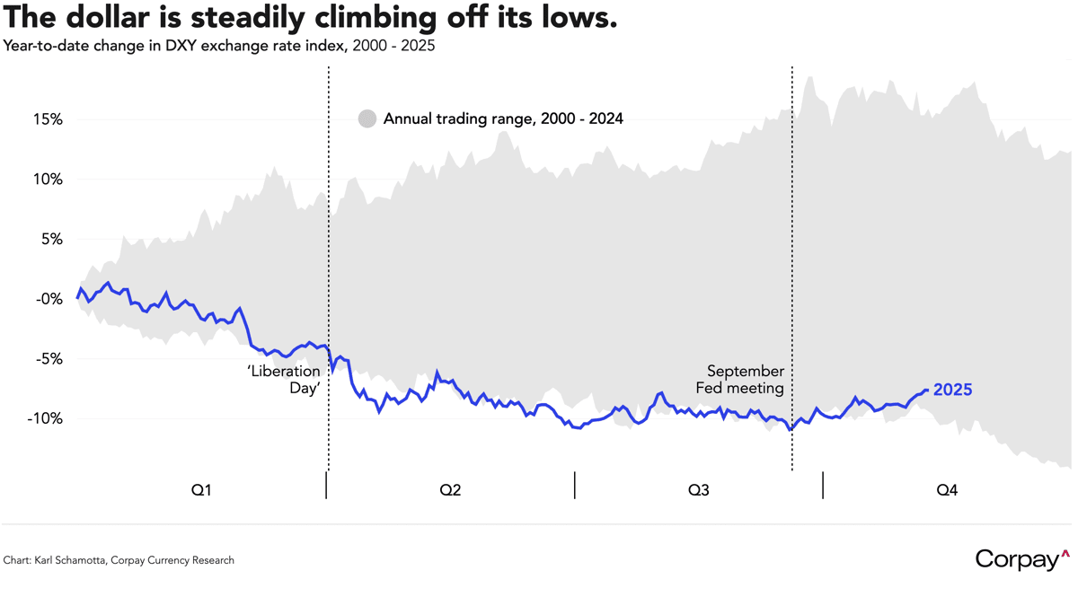 Above: In the year tariffs were hiked, the dollar struggled. Image thanks to Corpay.
