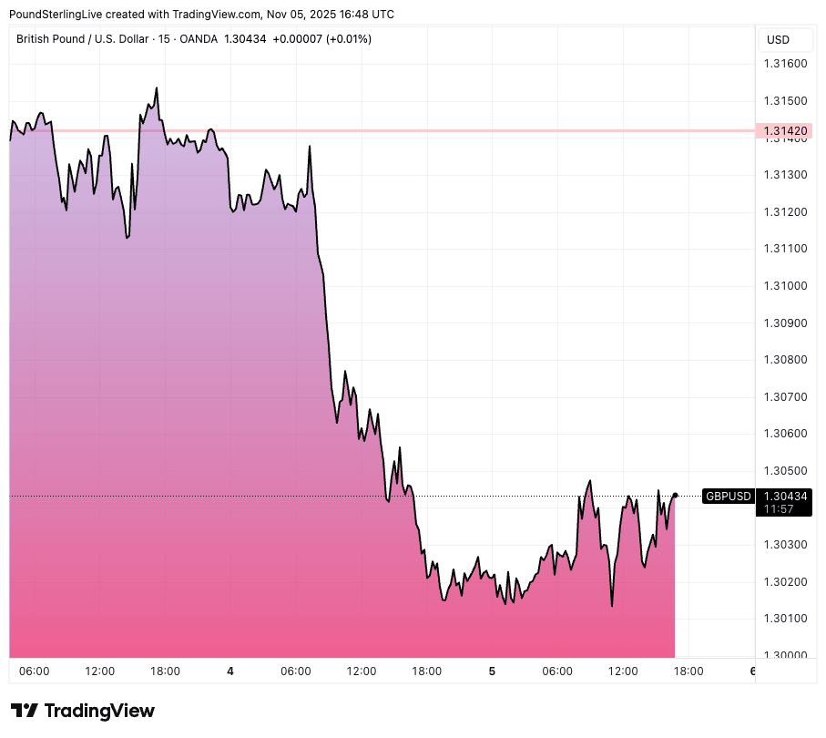 Above: GBP/USD stabilises after a tough couple of days.