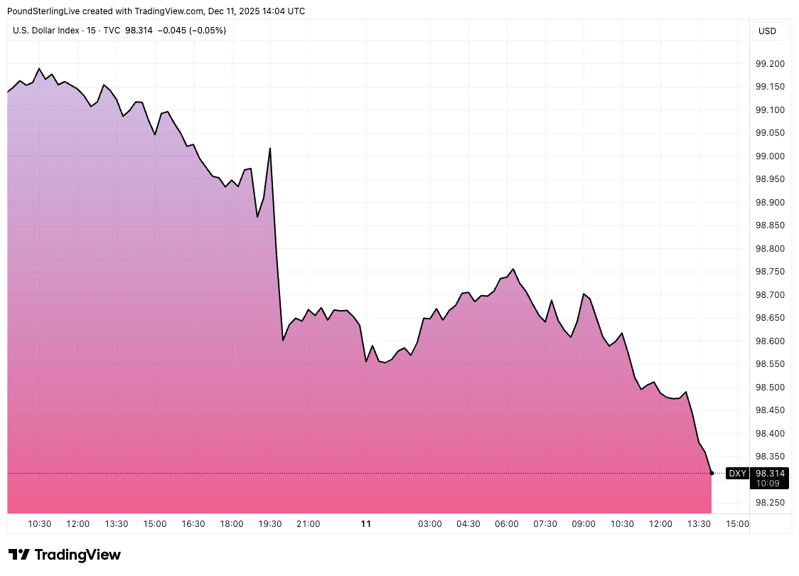 Above: The dollar index - a broad measure of USD performance - has come under pressure over the past 24 hours.
