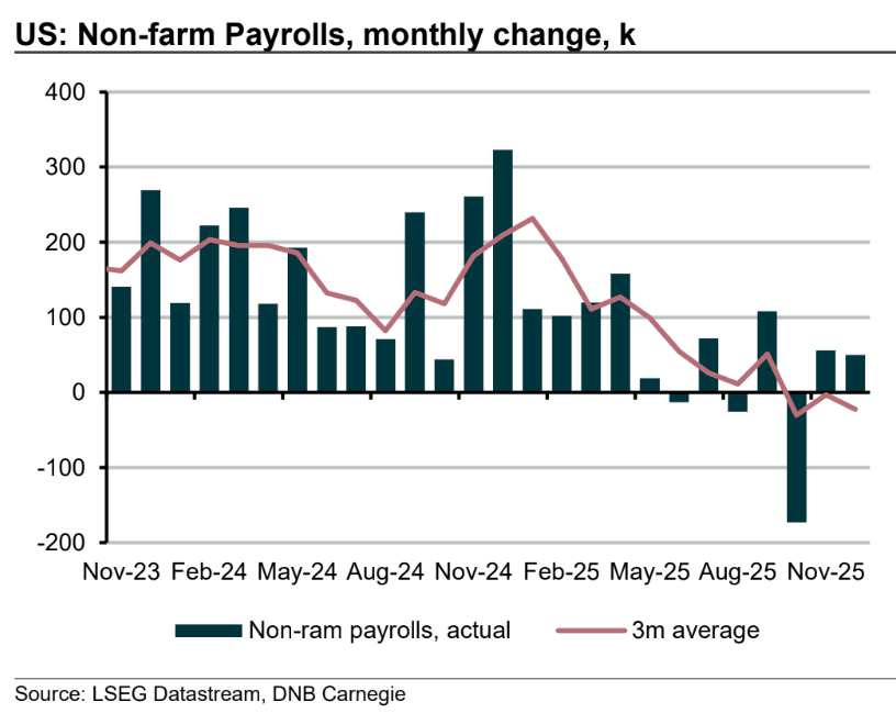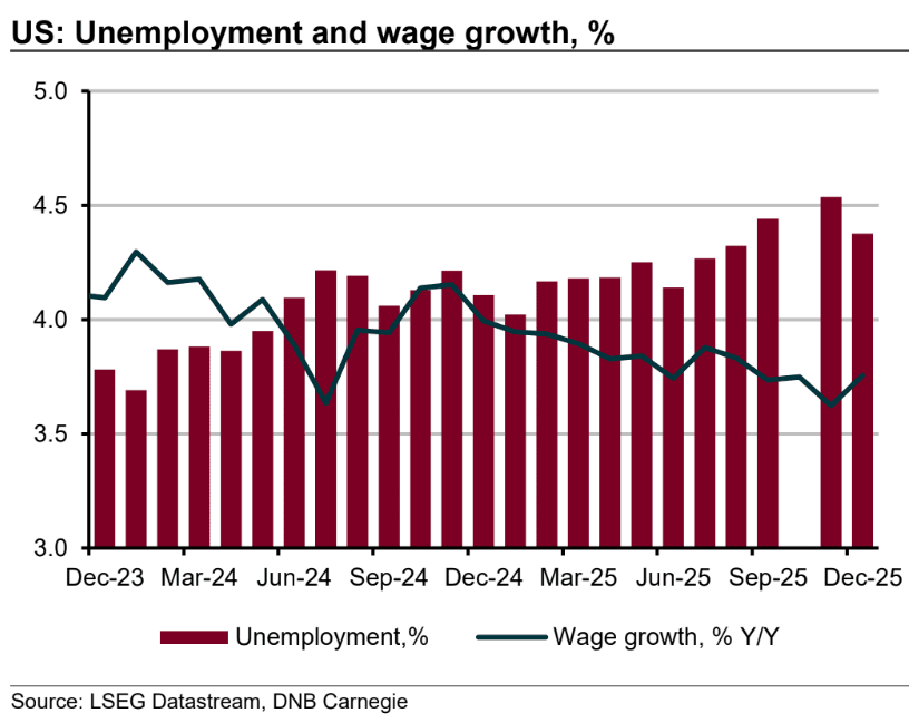 "Fears of a labour market collapse have eased as the December nonfarm payroll report corrected what failed the 'smell test' in November’s data," says Atakan Bakiskan, U.S. Economist at Berenberg.
