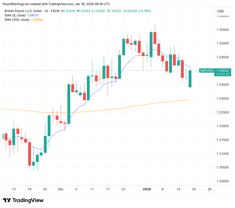 The British pound starts the new week with a bid owing to U.S. tariff threats over Greenland.