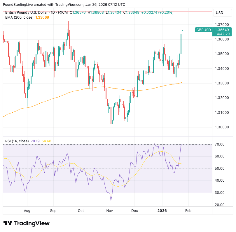 The pound to dollar exchange rate (GBP/USD) surged to a new four-month peak on Monday at 1.3663, the highest level since September 17.