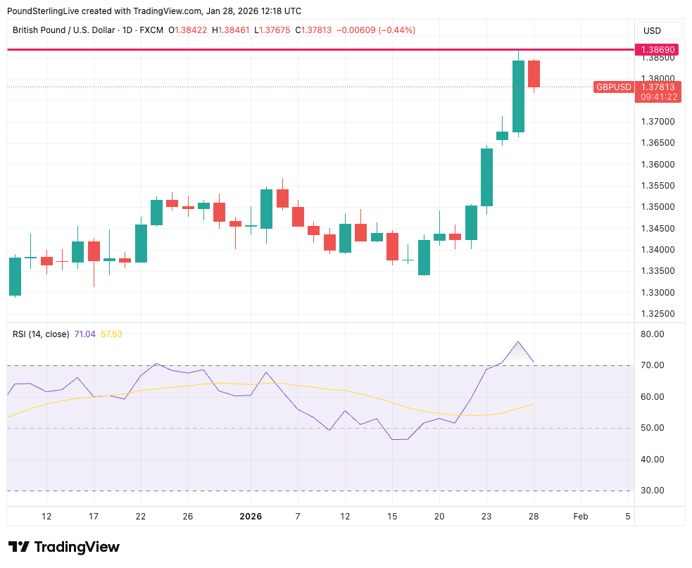 Above: GBP/USD at daily intervals with RSI in lower panel.