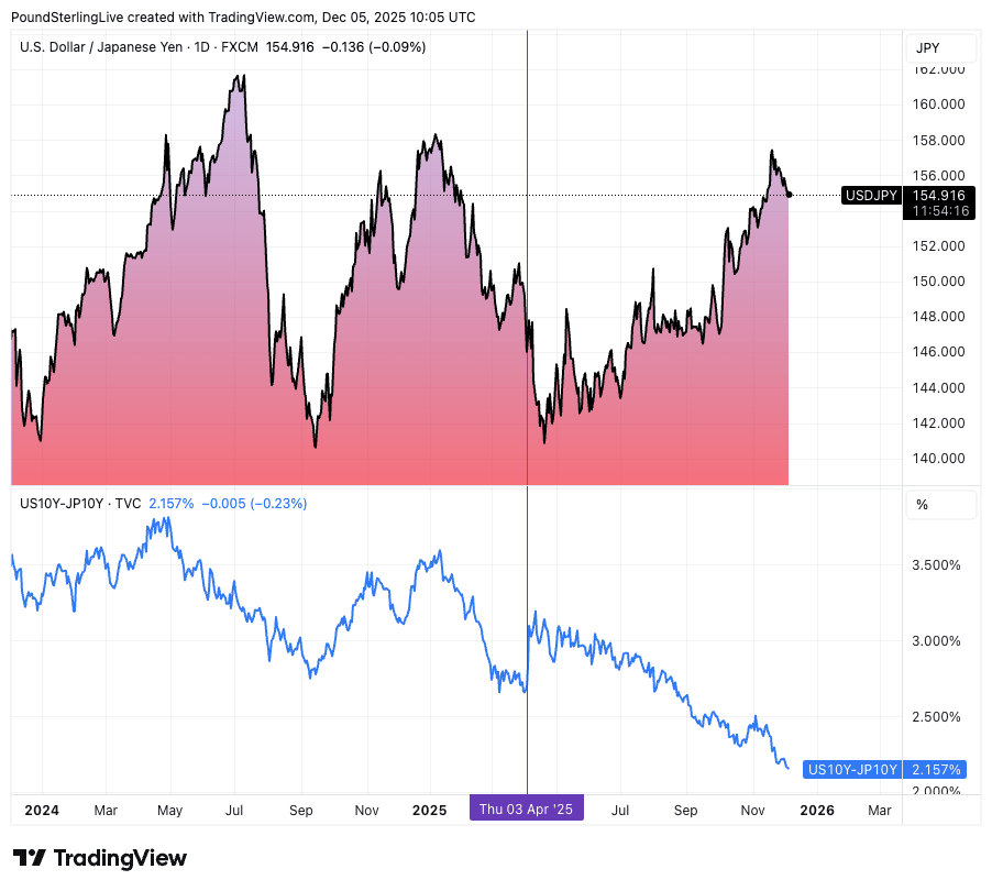 JP Morgan continues to expect a gradual narrowing of U.S.–Japan yield spreads in 2025, but says the adjustment will be slow and insufficient on its own to generate a near-term yen reversal.