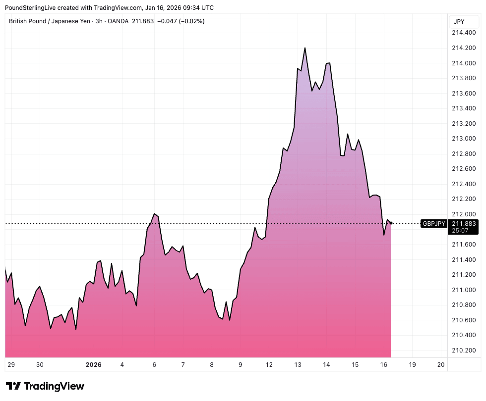 Above: GBP/JPY pulls back from the highs as the yen recovers.