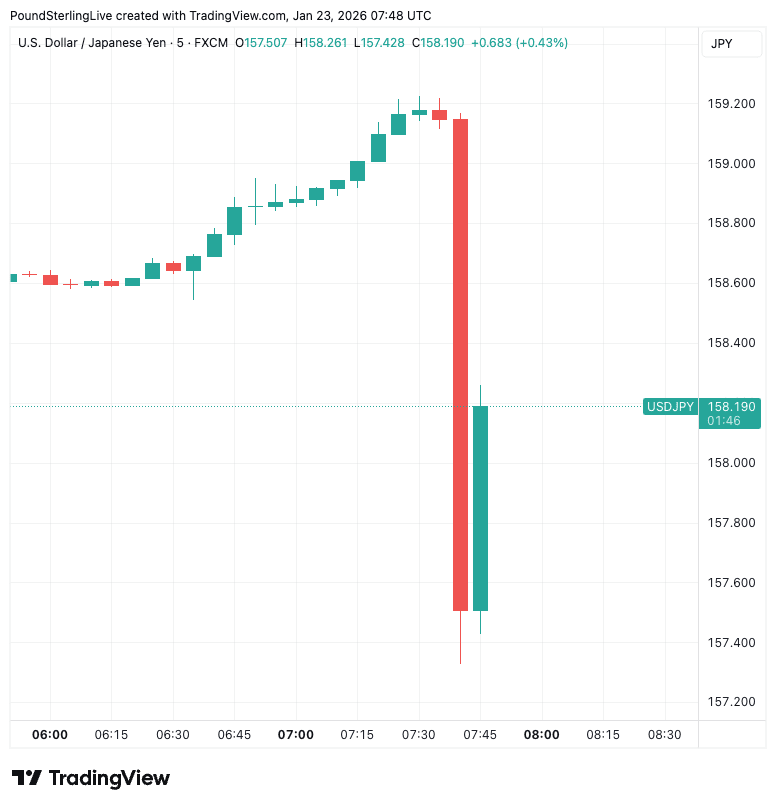 The dollar-yen exchange rate dropped 159.20 to 157.40 at 7:43 GMT before the move was pared and USD/JPY recovered to 158.22 in the following minutes.