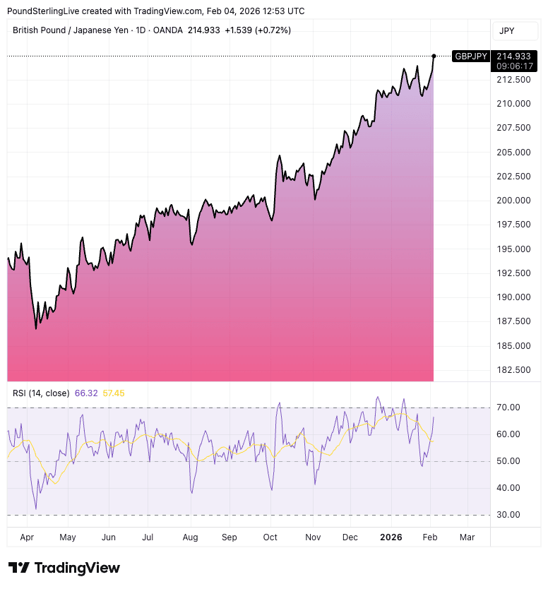 Above: GBP/JPY breaks new 18-year highs midweek as JPY comes under renewed pressure.