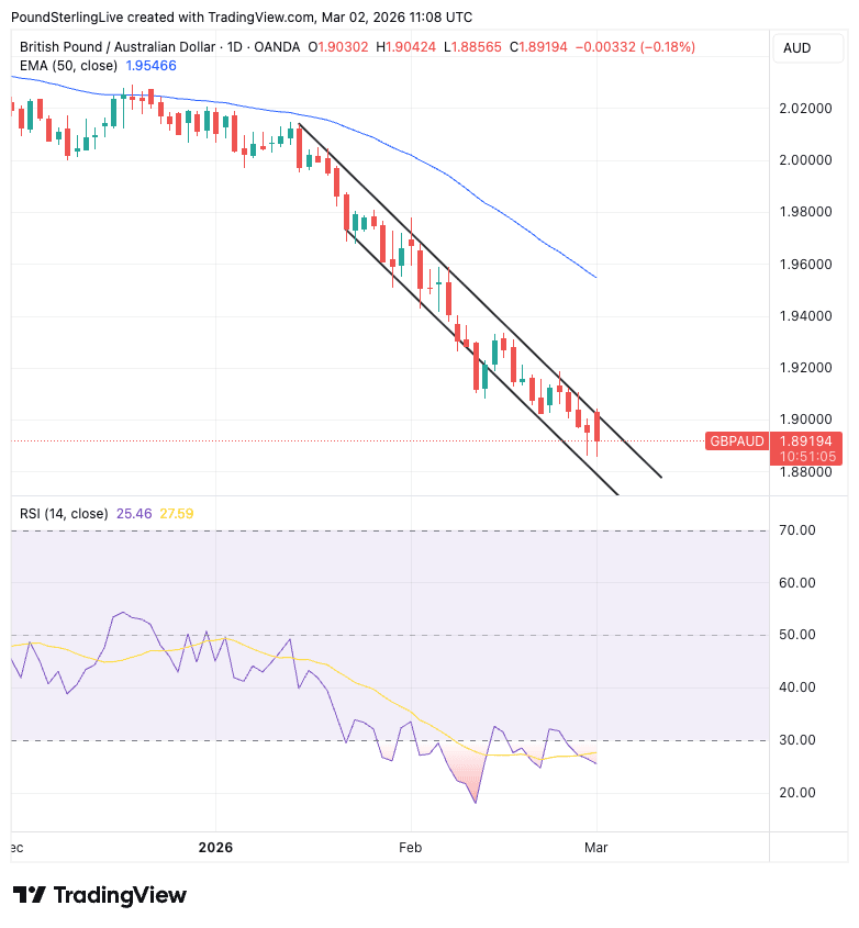 GBP/AUD is forecast to reach new lows near 1.8825 this week.